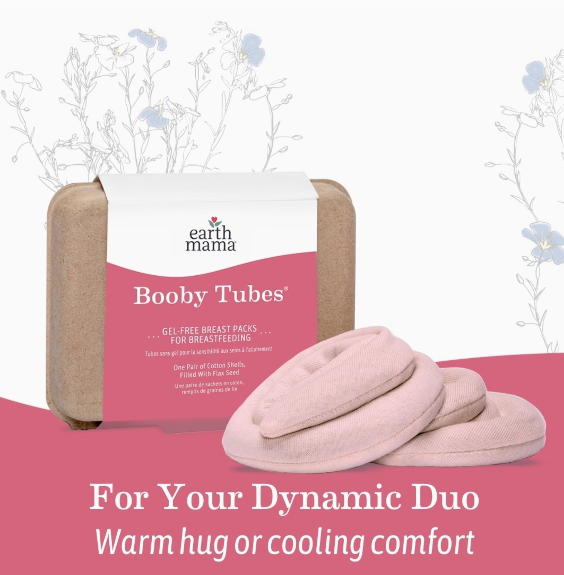 Earth Mama’s Booby Tubes® are innovative and safe breast packs to help ease the common discomforts of breastfeeding. Completely gel-free, each tube is a clever spiral-shaped organic cotton shell, filled with natural flax seed. For warm, moist heat, warm Booby Tubes in your microwave for 20-40 seconds; for cooling comfort, store in the freezer.