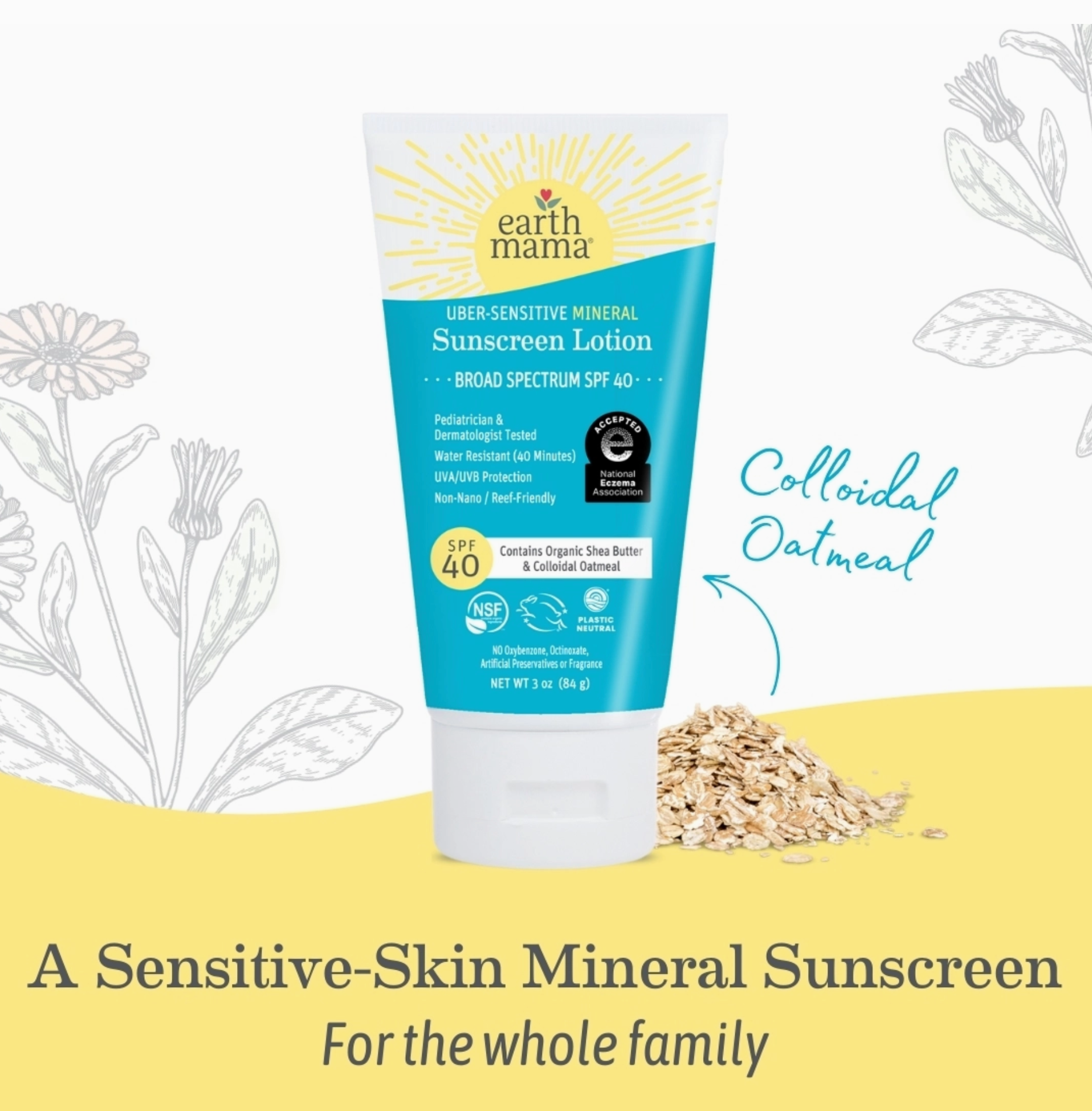 Safe for the rashy-est of skin, Earth Mama’s creamy Uber-Sensitive Mineral Sunscreen Lotion (Broad Spectrum Sunscreen SPF 40) contains plenty of calming organic colloidal oatmeal and organic shea butter (much more than the amount of colloidal oatmeal than...